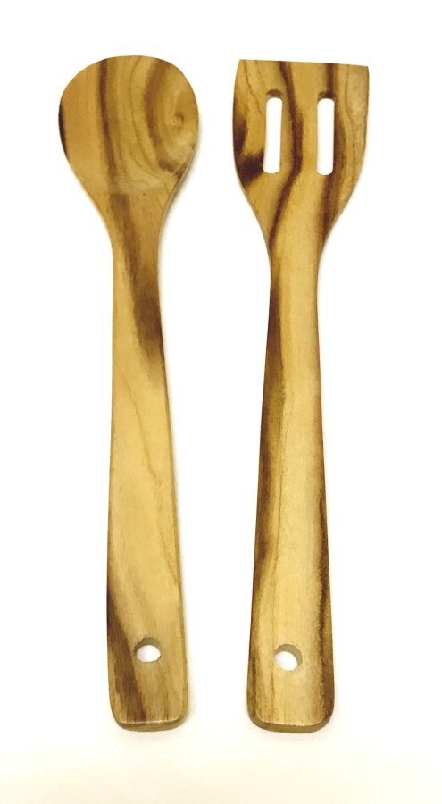 - 11.5″ first quality best wooden cooking utensils is sold as a 2-pack: includes a slotted spatula and regular spoon.