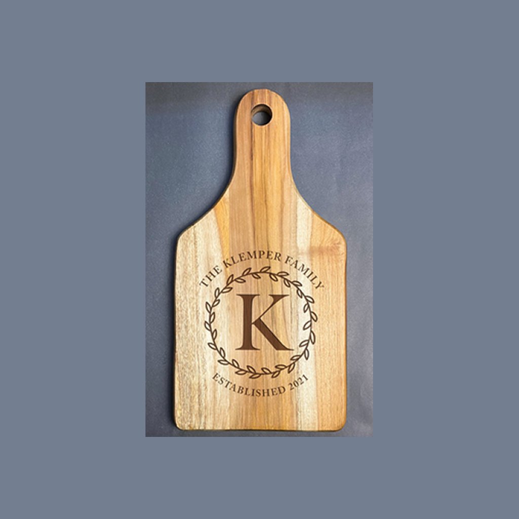 - To order this board with custom laser engraving, visit: https://shopmemoryforge.com/products/floral-monogram-custom-wooden-cutting-board